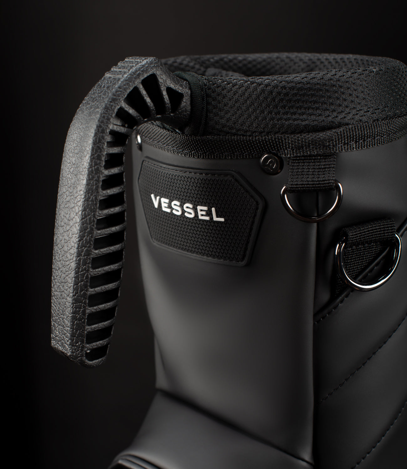 The Pencil Stand bag features a 4” 2-way top with a dedicated slot for your putter or driver. Lined with space-mesh for added protection. Comfortably fits up to 6 clubs.