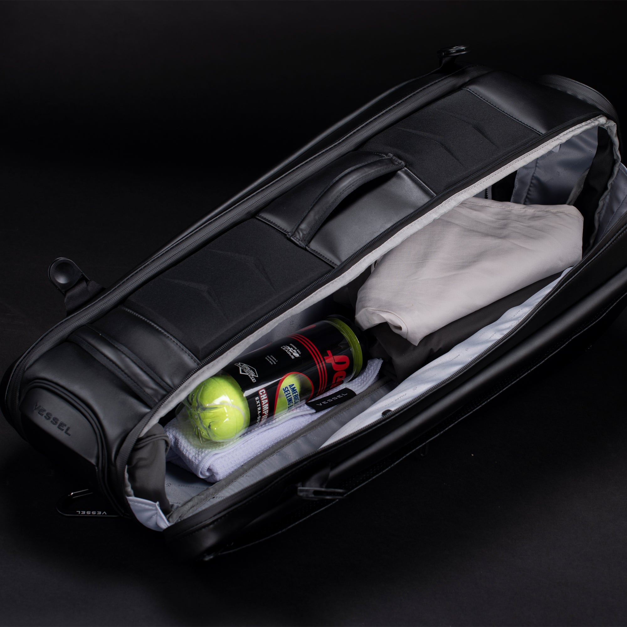 The spacious main compartment can store up to an additional 4 racquets & offers plenty of storage for a change of clothes, tennis ball cans, etc.