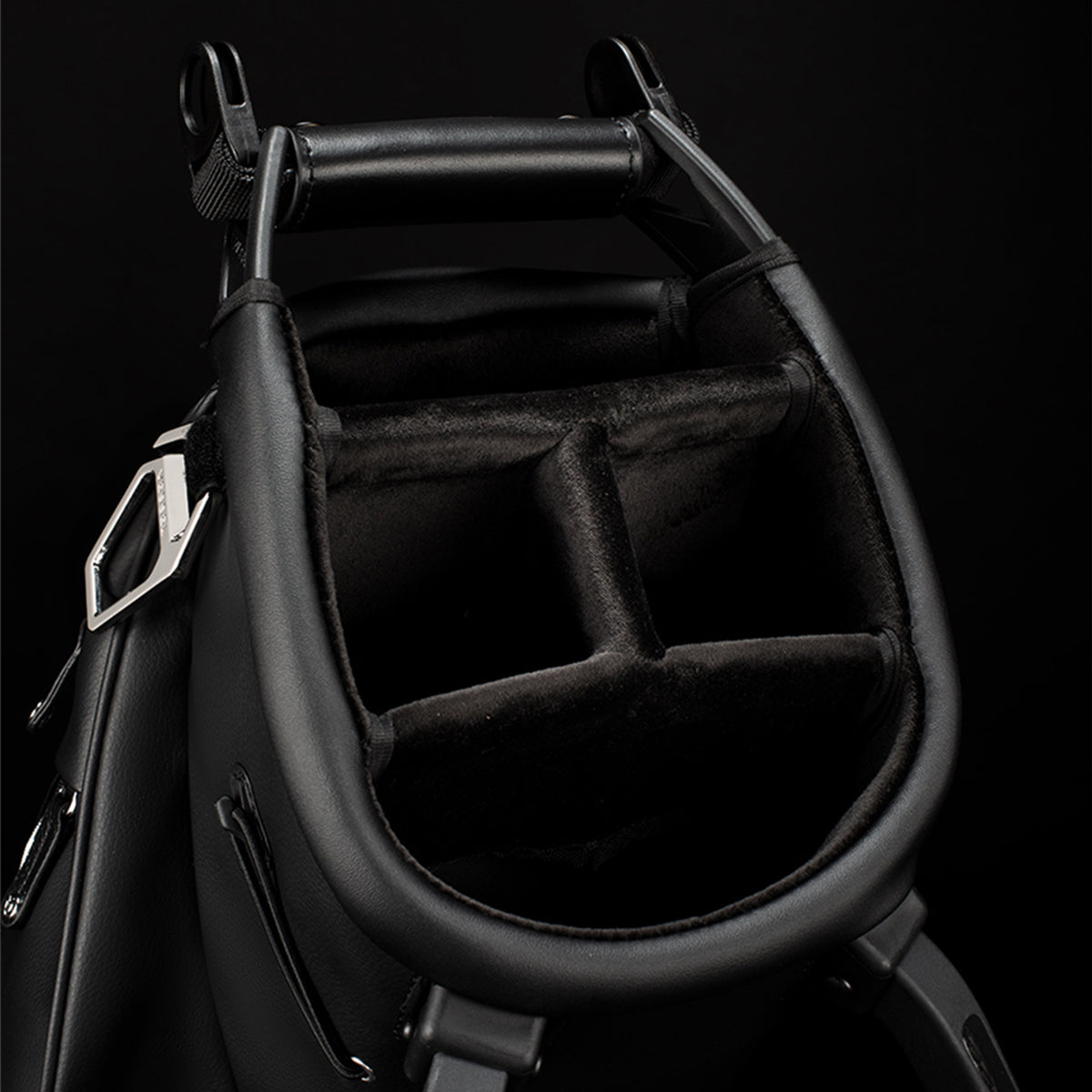 The Lux Carbon stand bag is equipped with our patented Equilibrium 2.0 Double Strap. This ergonomic strap features an 8-point swivel mechanism which self-adjusts to each golfer’s gait.