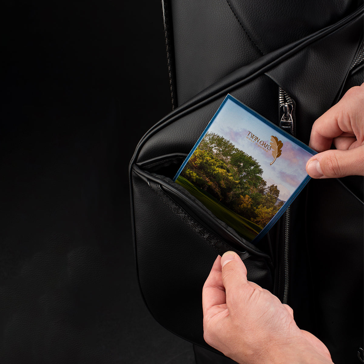 Allows for easy-access while the bag is being carried. Ideal for storing frequently used items such as a yardage book or score cards.