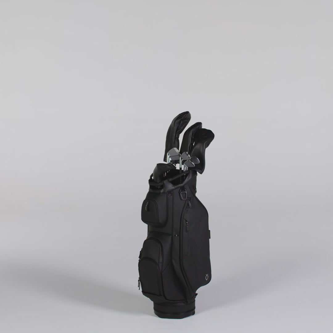 The Lux Cart bag was intentionally designed to give you a premium riding experience. Starting with 2 forward-facing pockets and an upper pocket pod that swings over the cart strap and snaps down with a magnetic closure, securing your bag in place without restricting access to essentials while on a cart. With two antimicrobial lined personals pockets and a lockable valuables pocket, this cart bag offers plenty of storage for your valuables. Two carry handles and a padded single strap are included for a comfortable carry from the golf cart to the car. Dual water bottle sleeves and a large cooler-lined compartment, fit plenty of beverages for a full round. Both top sizes feature a dedicated putter well and microfiber-lined dividers for optimal club storage. Crafted with our signature attention to detail, the Lux Cart bag boasts genuine leather touchpoints, chrome finishes, and tour-grade body materials.
