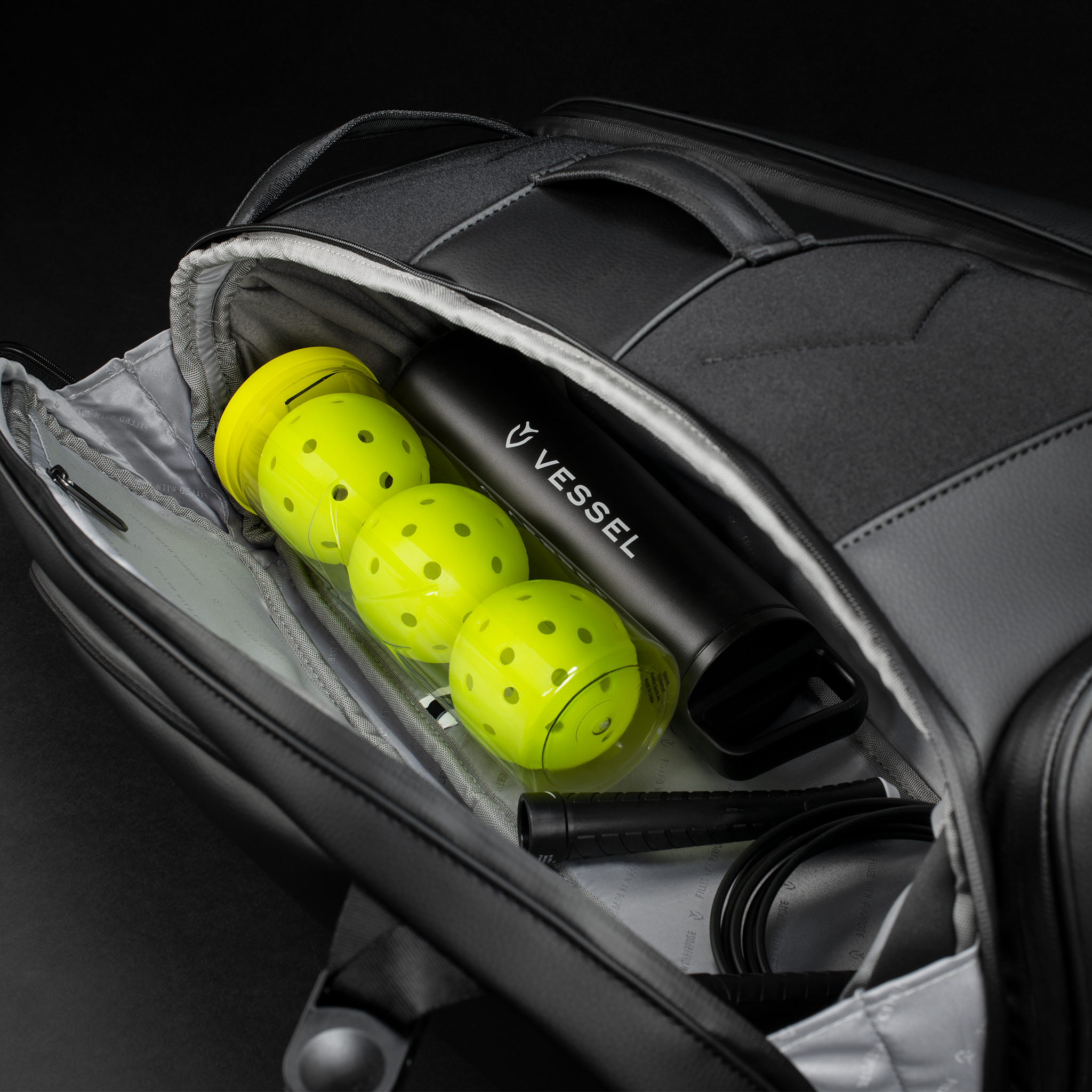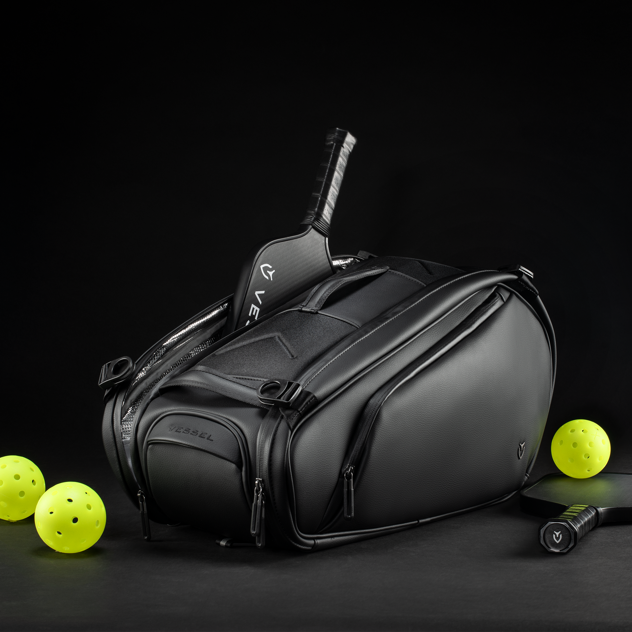 The large main compartment comfortably fits up to 3 paddles with plenty of room for other court essentials such as pickleballs, towels, garments, membership cards and more.