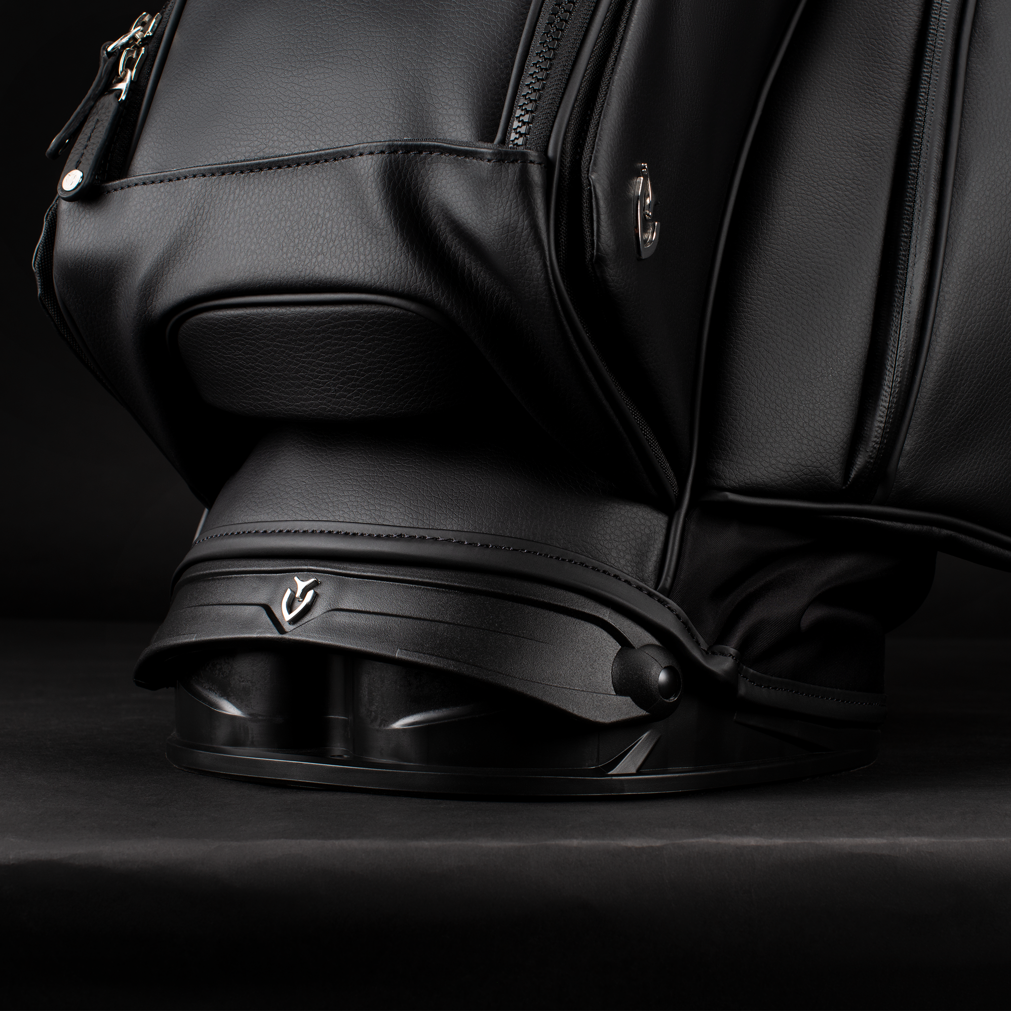 The Player V Pro golf stand bag utilizes our performance proven, patented Rotator Stand System. This flex activation, combined with a wide, low-profile base allows the bag to sit flush against the ground when the legs are fully deployed.
