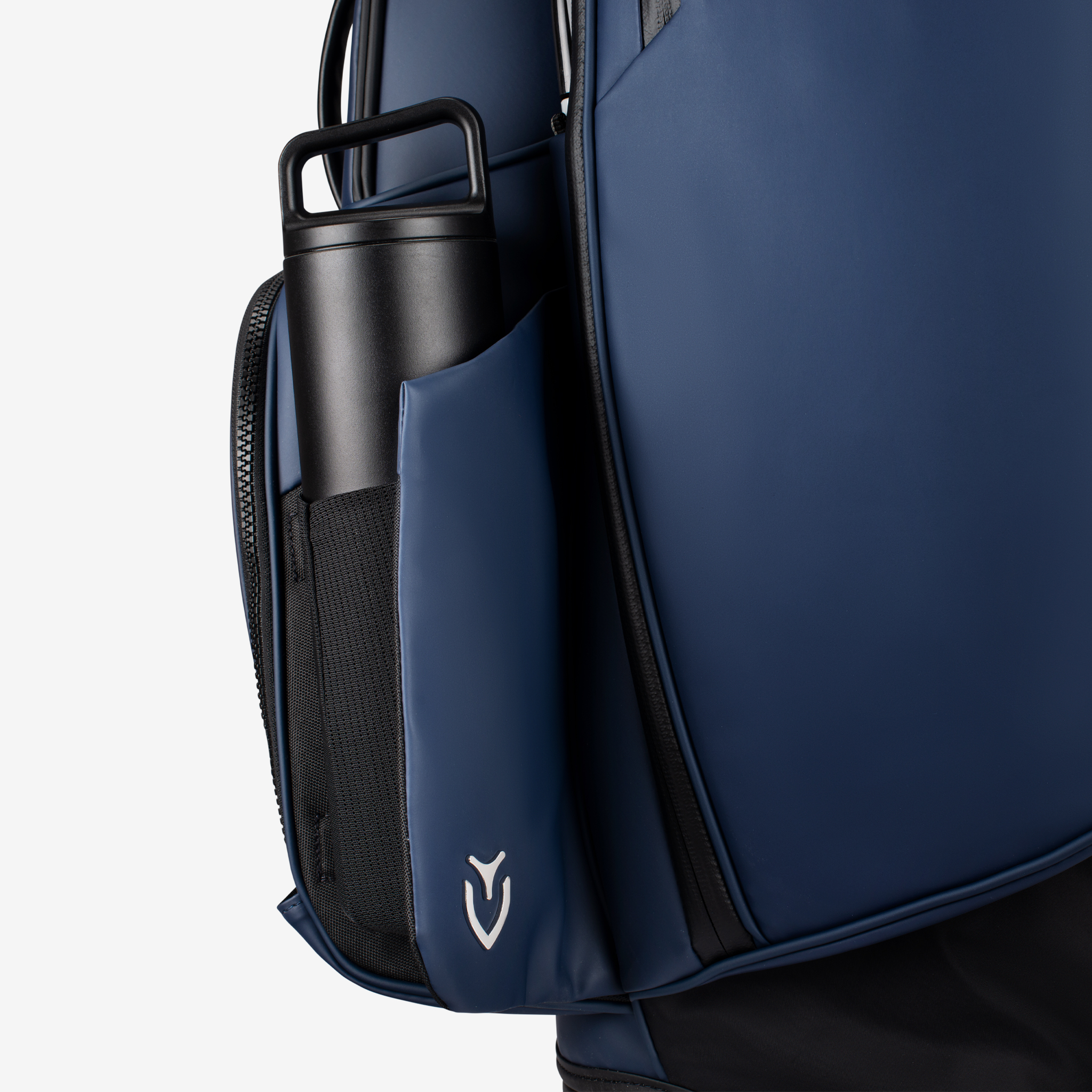 The Player V golf stand bag utilizes our performance proven, patented Rotator Stand System. This flex activation, combined with a wide, low-profile base allows the bag to sit flush against the ground when the legs are fully deployed.
