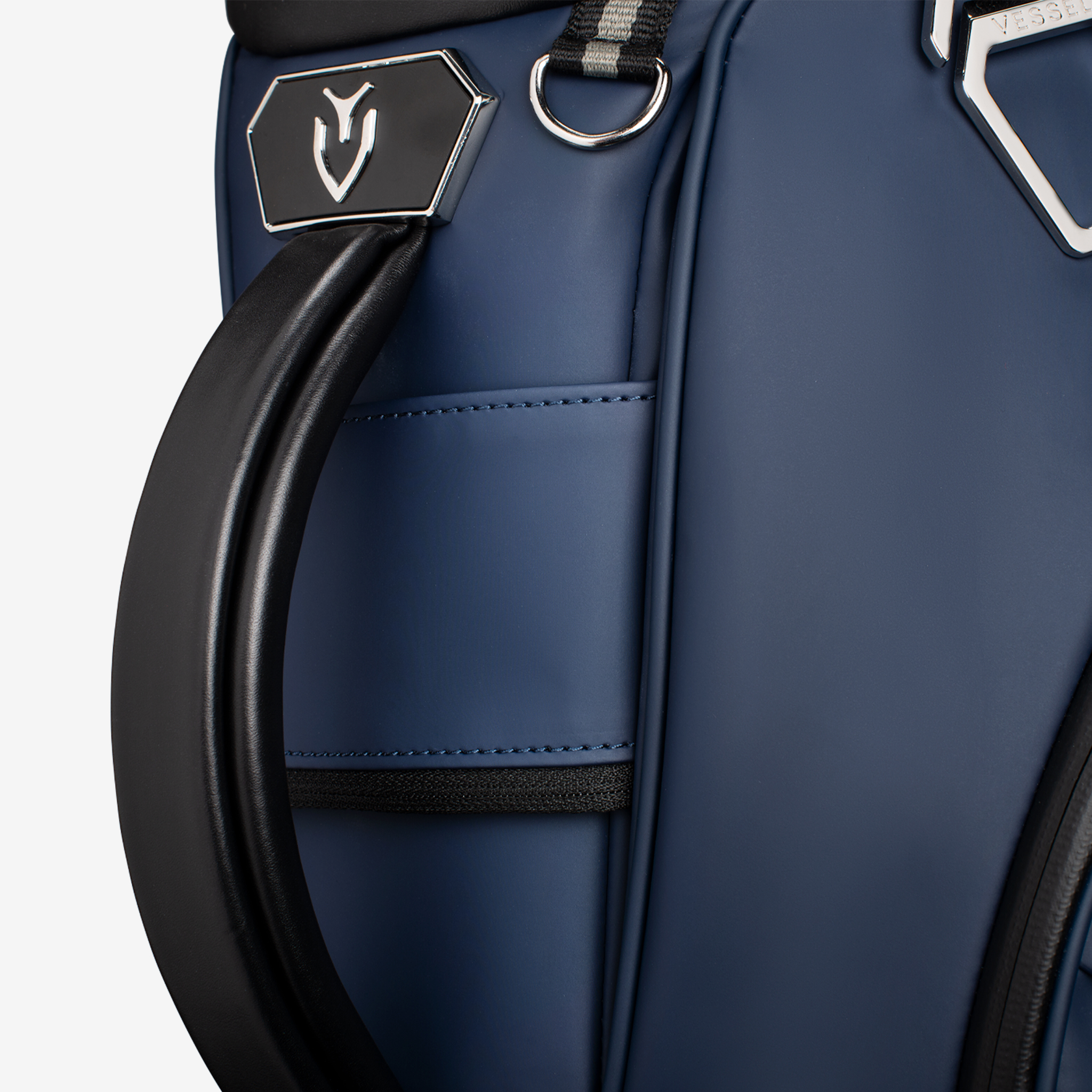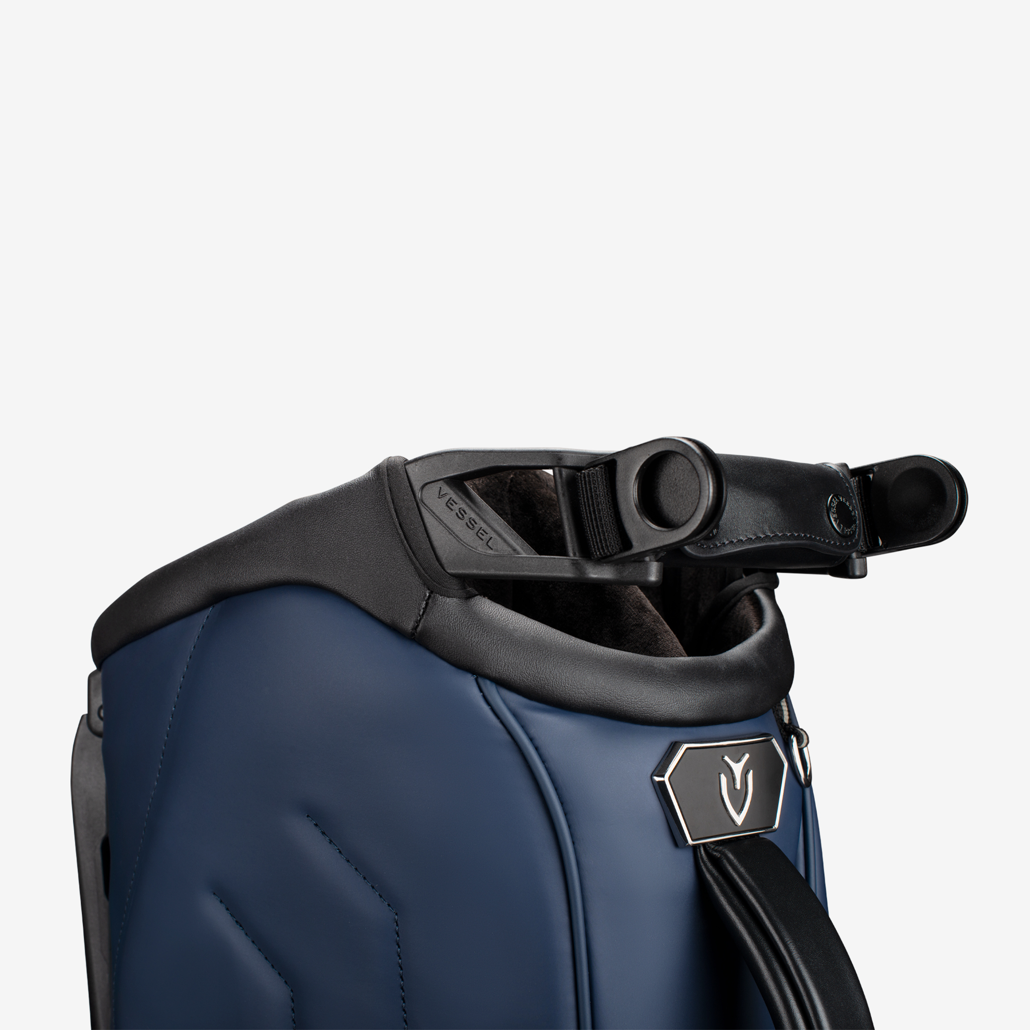 The Player V stand bag is equipped with our patented Equilibrium 2.0 Double Strap. This ergonomic strap features an 8-point swivel mechanism which self-adjusts to each golfer’s gait.