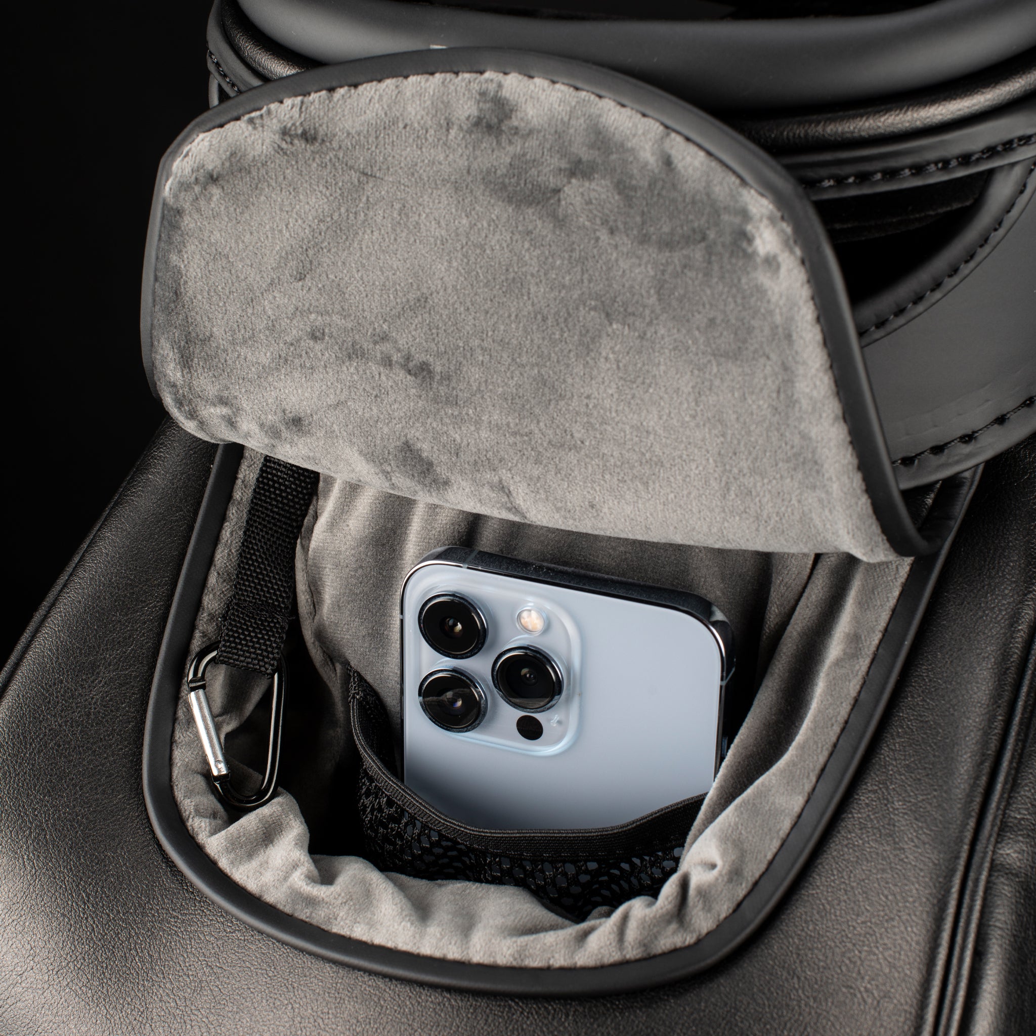 Professional golf bags need to withstand the rigors of constant play and occasional travel so the VESSEL Prime 2.0 Staff bag features a 6-way top with structural steel ring. This meticulously-designed top is wrapped in luxurious microsuede and features 2 horizontal dividers to ensure that all golfing gear, clubs, and shafts are protected.