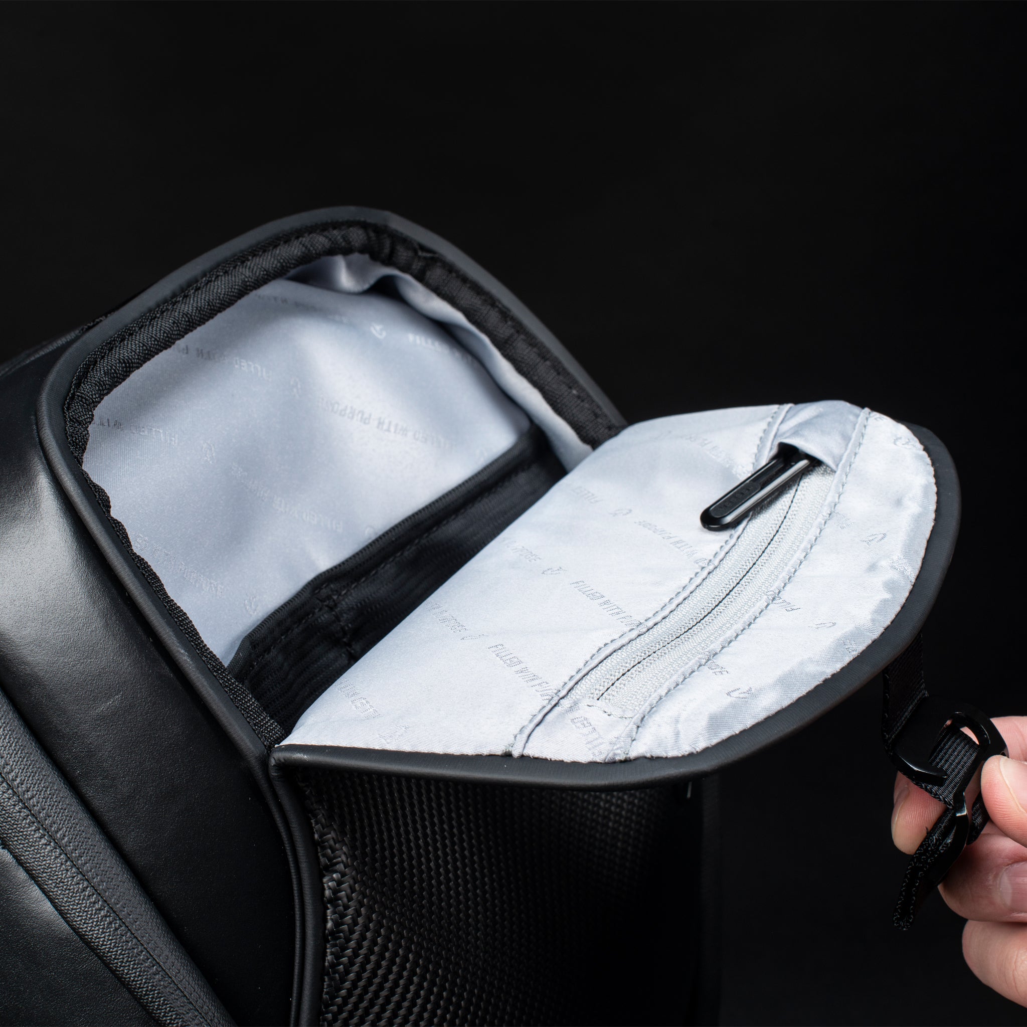 A signature VESSEL feature is the magnetic accessory pocket. ThePrimeX Backpack displays a slightly modified version with interior organization and a hook-lock system for security. The snap-closure magnetic edges keep the pocket closed and secure. The antimicrobial lining helps fight deterioration, odor and bacteria.